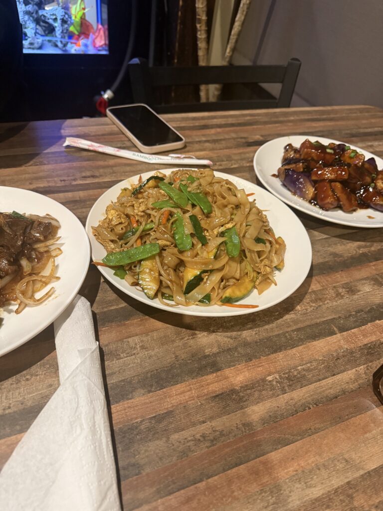 We ordered TOFU EGGPLANT in GARLIC SAUCE $ 17.99, VEGETABLE SINGAPORE NOODLES ( Chow Fun ) $ 19.99 and MONGOLIAN BEEF $ 21.99 and to add insult to injury they charge you for the small bowl of steamed rice that generally comes with these entrees!! 2 small bowls of rice $2.00 *** Note if I had noticed this silly charge, I would have taken it off the tip, I don’t tip for getting taken advantage of.