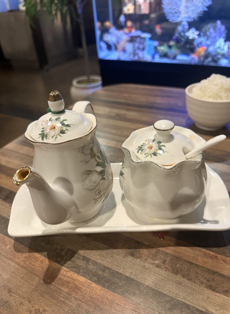 Getting back to what could be Chinese Food Heaven, KIRIN Hut, when we walked in it felt nice, it was comfortable and it had no nasty stink. The place appeared clean and there was a well maintained beautiful fish tank with gold fish (Goldfish are a good luck fish in this culture). The young lady who sat us appeared happy to see us and sat us at a nice clean table and was wearing a surgical mask. *** Visit the Great Wall restaurant you better bring anti-viral wipes.