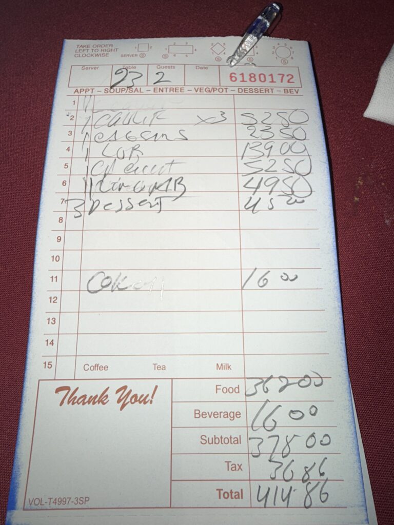 The restaurant is small and has a sense of coziness. It is becoming a realization for me that for what this place cost to ‘eat’ in it could use a good cleaning…. The lights are very, very low, but nice. Not sure what we would see if the lights were turned up to daylight standard, just saying. Something I seldom ever care about is price when I dine and at the same time you/I have to wonder if your server should be wearing a mask. Not long ago I had a dinner with my grand kids at Ruth Chris and the bill was over $900.00 with tip. The meal was spectacular and the place looked well lit and clean. The service was as attentive as you could have and still feel as if you were not being bothered. The seafood tower was one of the best I have had, lots and lots of lobster…. and you will pay for it! A seafood tower is not for the faint of heart, they are delicious in most cases worth the $100-$200 plus that they cost. Presentation is almost as important as the service, the kitchen staff at Ruth Chris know how to present their incredible food. I have eaten at several of Ruth Chris’ establishments all over the U.S. San Francisco was always one of my favorites… my least favorite was Beverly Hills, both of these locations no longer exist.